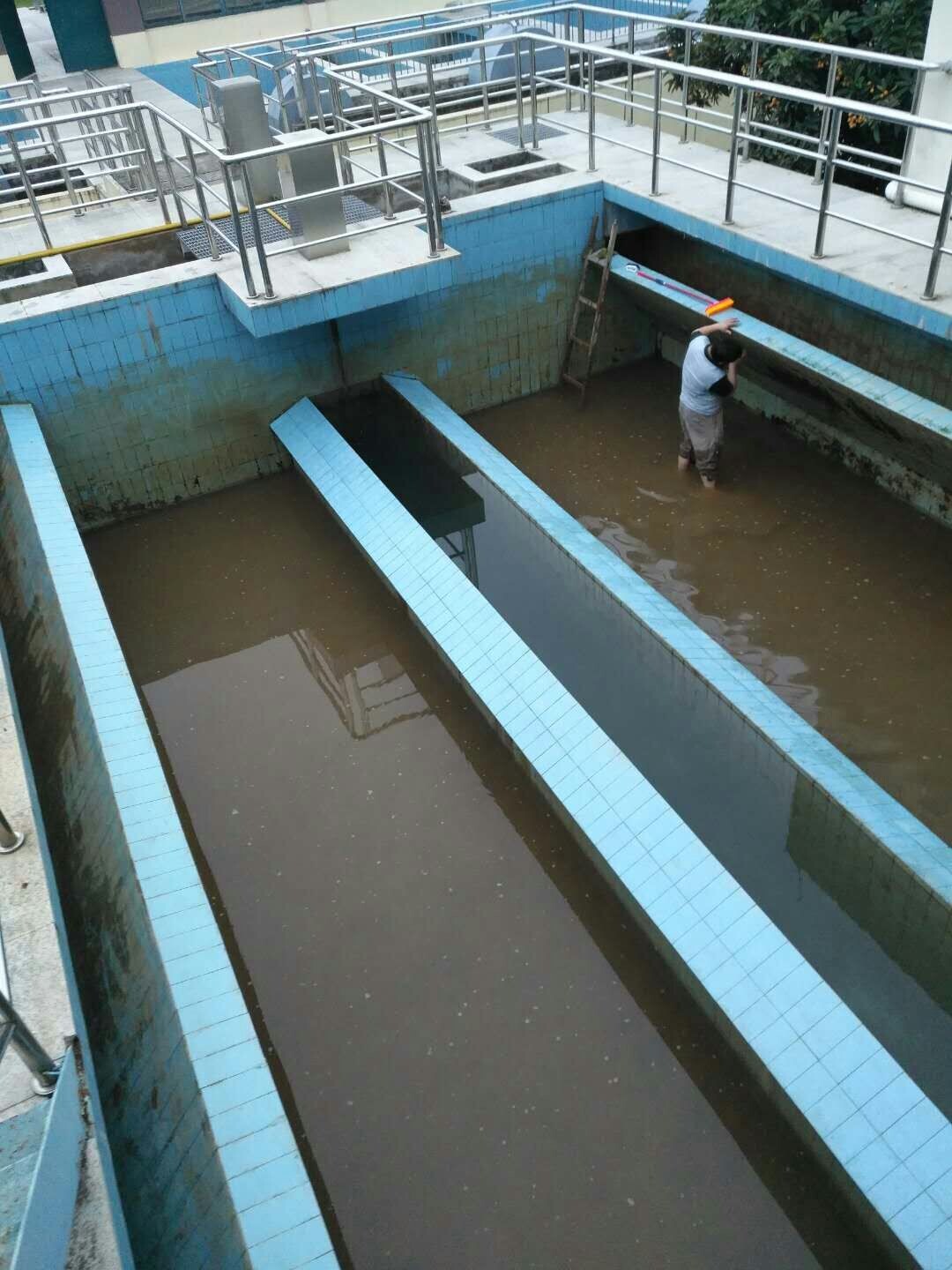 水廠濾池由于長(zhǎng)時(shí)間不間斷運(yùn)行,給出水帶來(lái)污染。在為期2天的清洗工作中,工作人員在濾池中認(rèn)真鏟刮、清掃、沖洗濾池內(nèi)壁殘留不少淤泥、雜質(zhì)、青苔,清理過(guò)的濾池內(nèi)壁煥然一新。