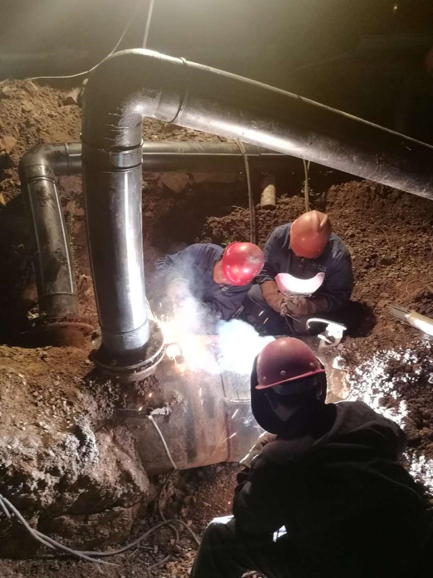 321日晚10時,荊門市給排水安裝工程公司對荊石線供水管道2處臨時管道進行拆除,并順利進行DN600主管道碰頭施工。經過施工人員的連夜搶修,次日凌晨54DN600主管碰頭全部施工完畢,比原計劃提前3個小時完成任務。為不影響荊石線沿線所有居民及工業(yè)用水,施工安排在夜間進行。