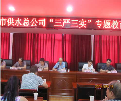 4月26日下午,市供水總公司在六樓會議室召開三嚴(yán)三實專題教育活動動員會,黨委書記、總經(jīng)理陳永根聯(lián)系公司實際為全體黨員上黨課。公司全體賞、中層以上干部100余人參加,會議由黨委副書記、紀(jì)委書記、工會主席徐黎明主持。