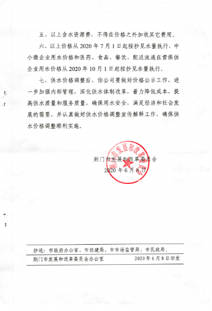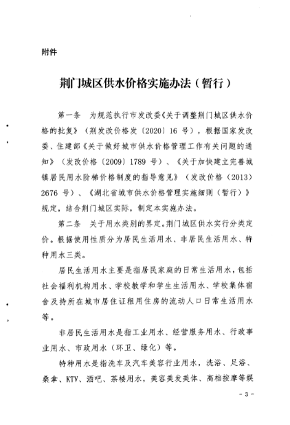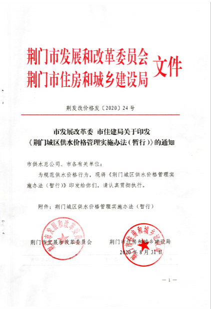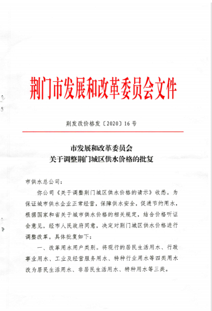 荊門城區(qū)供水價(jià)格批復(fù)和管理實(shí)施辦法