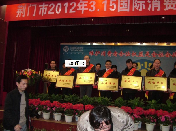 近日,市供水總公司在荊門市“萬(wàn)名消費(fèi)者評(píng)誠(chéng)信”活動(dòng)中,經(jīng)廣大消費(fèi)者投票評(píng)選,被荊門市文明委、市工商行政管理局、市消費(fèi)委員會(huì)聯(lián)合授予“誠(chéng)信單位”稱號(hào),并頒發(fā)牌匾。