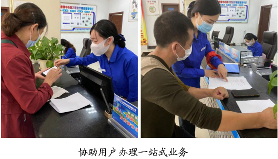 收費(fèi)中心6名黨員佩戴黨徽,在各自崗位上帶頭做好服務(wù)。集團(tuán)各營業(yè)廳均設(shè)置“黨員示范崗”和 “學(xué)雷鋒志愿服務(wù)崗”,配備緊急醫(yī)用藥品和應(yīng)急物資,以備用戶不時(shí)之需。志愿者們配好綬帶上崗,主動(dòng)回復(fù)業(yè)務(wù)咨詢,做好答疑解惑,貼心為困難老人代辦業(yè)務(wù),贏得用戶一致好評。