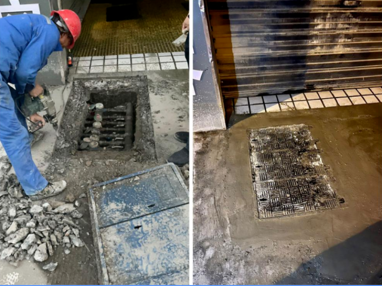 李先生是小區(qū)業(yè)主,見洗車店里每天進出車輛較多,導(dǎo)致門口的地埋式水表箱產(chǎn)生形變,且有積水,存在一定的安全隱患。3月4日上午,在接到李先生的求助后,水務(wù)集團第一時間派專人上門勘察,發(fā)現(xiàn)門面附近有天然氣管道標(biāo)識地磚,但沒有管道走向標(biāo)識地牌,貿(mào)然操作可能引發(fā)安全事故。經(jīng)溝通,工作人員擬將原水表箱更換為鑄鐵式水表箱,并幫其清除積水。為保障洗車店正常經(jīng)營,集團于5號晚上完成施工整改。李先生感慨集團反映迅速、整改及時、技術(shù)過硬。