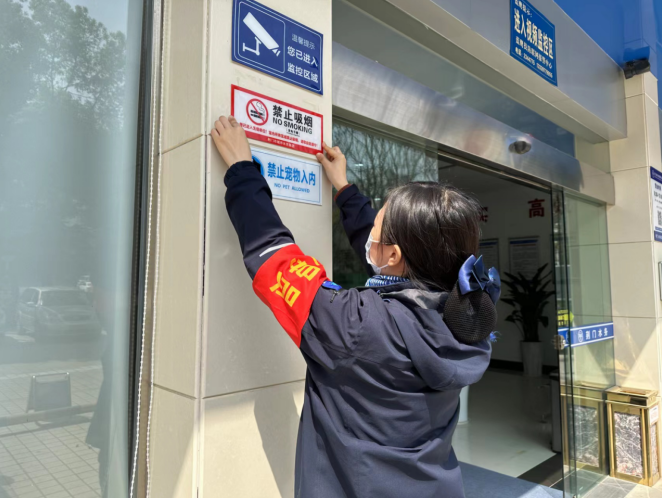服務(wù)窗口樹形象。窗口單位管理人員帶頭,全員上陣,對標(biāo)復(fù)審要求逐一排查整改。城區(qū)四個營業(yè)廳更換破損缺失的文明標(biāo)識標(biāo)語、健康教育專欄12處,增設(shè)“無障礙通道”“創(chuàng)城宣傳取閱點”等提示標(biāo)識,亮化了窗口辦公環(huán)境,提升了窗口文明形象。