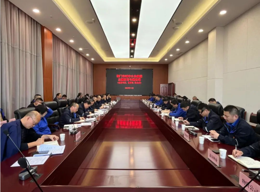 按照市委主題教育相關(guān)要求,11月21日下午,荊門市城市水務(wù)集團有限公司(以下簡稱集團)黨委書記、董事長陳永根以“凝心鑄魂學(xué)思想 主動作為謀發(fā)展”為題,為集團各單位、部門負責(zé)人及各支部書記講授學(xué)習(xí)貫徹習(xí)近平新時代中國特色社會主義思想主題教育專題黨課。市政府國資委副主任咼梅臨出席會議。