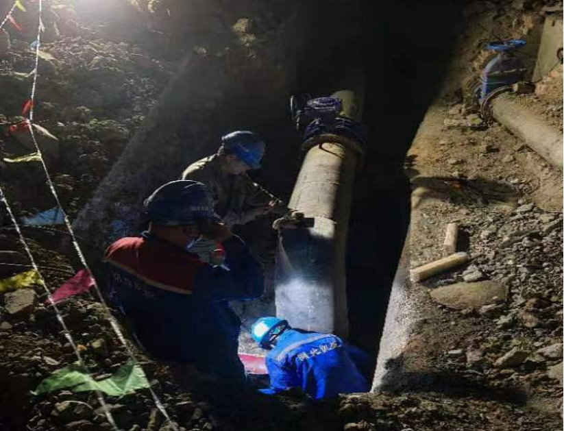 24日晚22時(shí)開始停水施工,工作人員在作業(yè)坑內(nèi)各司其職,排水、切割、加裝管夾、安裝三通、加裝閥門……工作現(xiàn)場(chǎng)緊鑼密鼓,人機(jī)作業(yè)井井有條,經(jīng)過5小時(shí)連續(xù)施工,圓滿完成碰頭施工,比原計(jì)劃提前3小時(shí)通水。