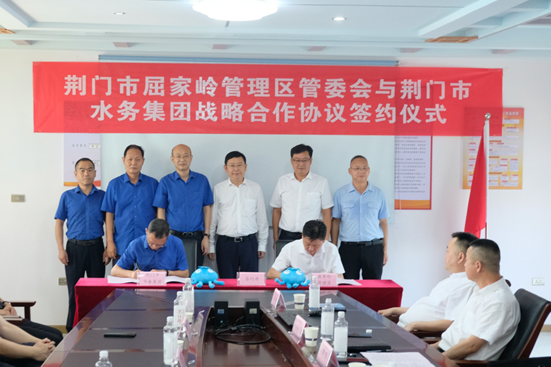 7月3日,荊門屈家?guī)X管理區(qū)管委會與荊門水務集團有限公司簽約戰(zhàn)略合作協(xié)議,荊門屈家?guī)X城鄉(xiāng)水務投資有限公司掛牌成立。屈家?guī)X管理區(qū)管委會、區(qū)財政(國資)局、區(qū)住建局、區(qū)經(jīng)發(fā)局、區(qū)農(nóng)水局主要負責人出席,與荊門水務集團、屈家?guī)X城鄉(xiāng)水務公司領(lǐng)導班子和職工代表共同見證了這一歷史時刻。