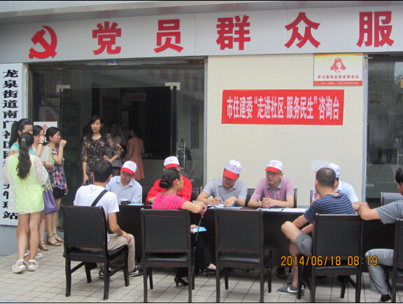 市供水總公司黨委書(shū)記陳永根(左二)在“走進(jìn)社區(qū)、服務(wù)民生,走進(jìn)企業(yè)、服務(wù)發(fā)展”活動(dòng)中,深入龍泉街辦南門(mén)社區(qū)傾聽(tīng)用戶呼聲,辦實(shí)事,解難題。