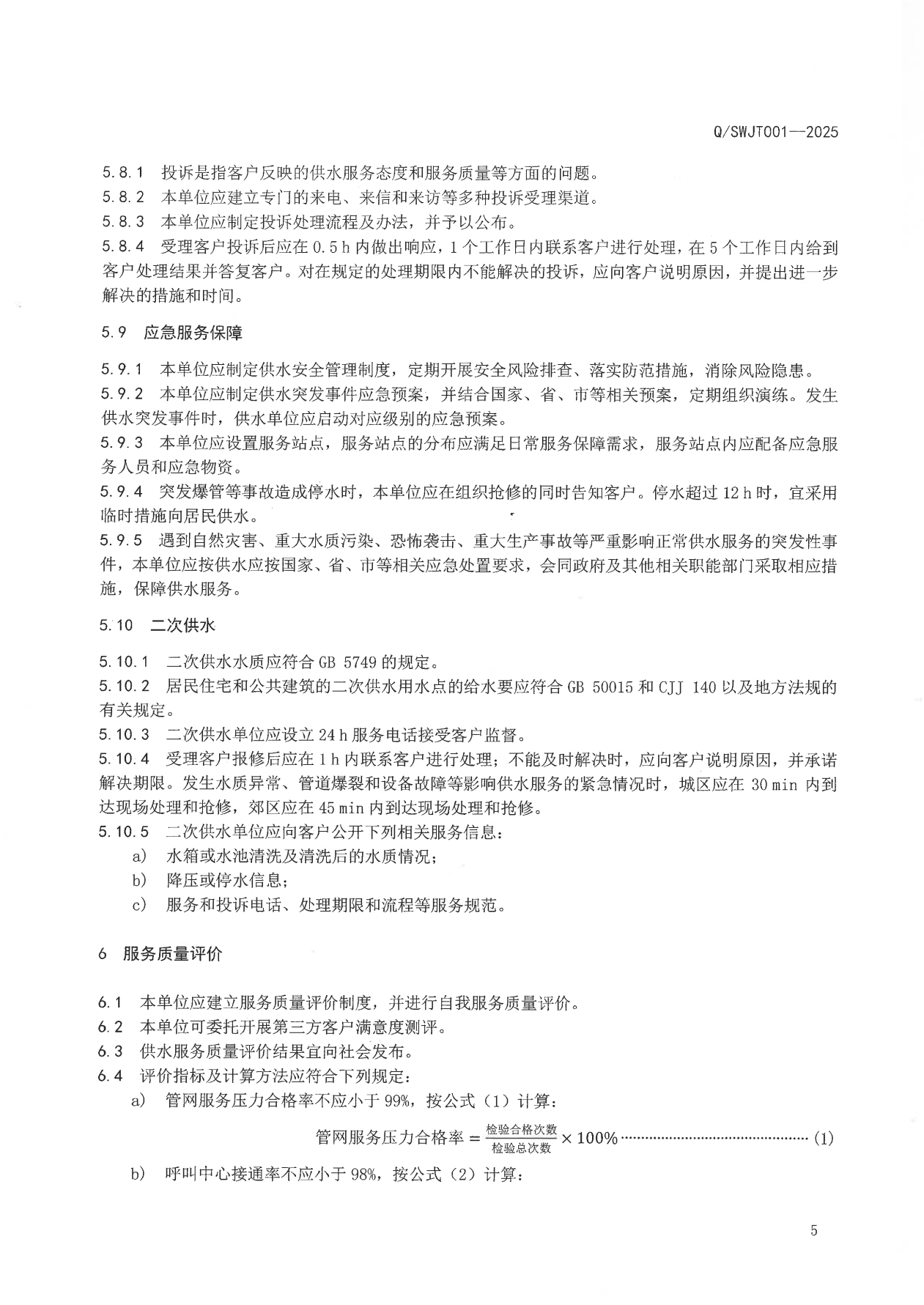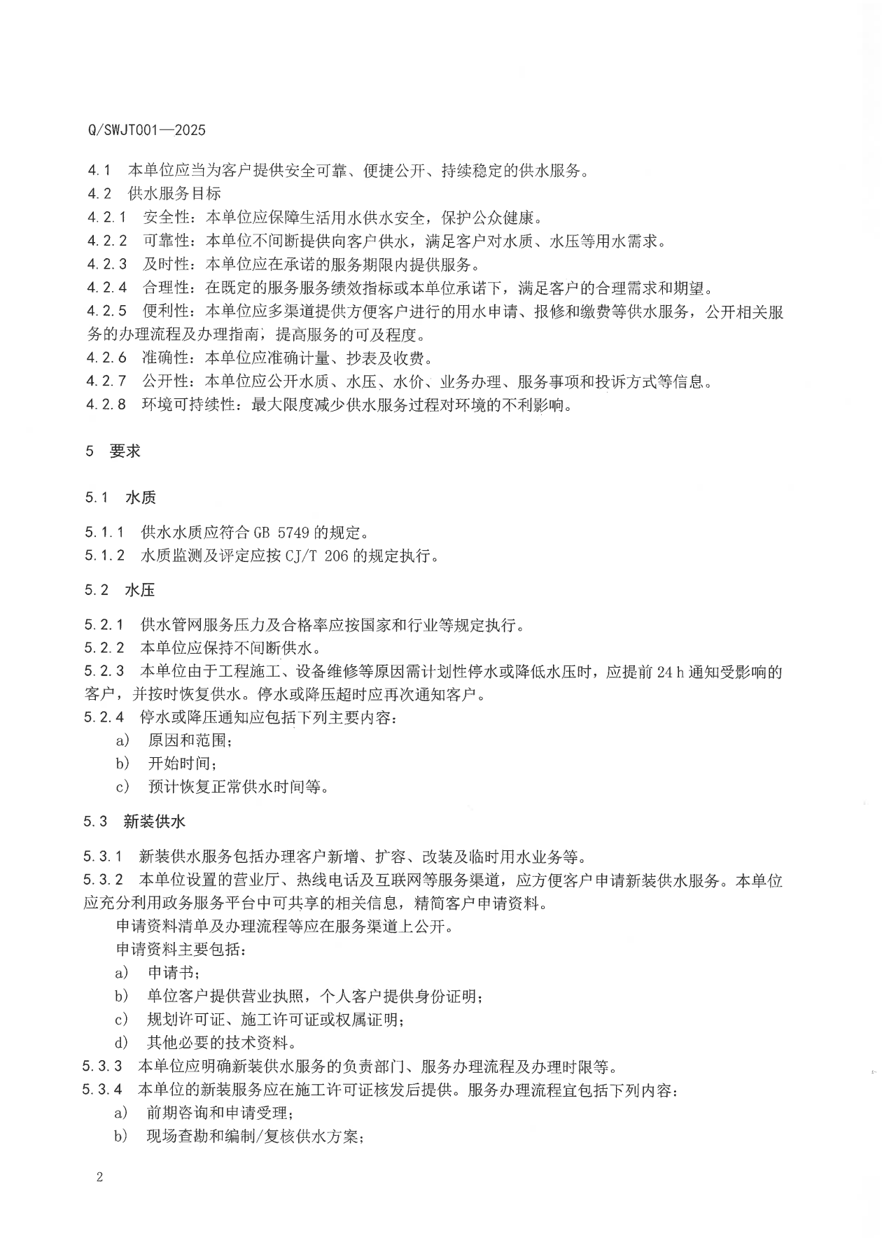 荊門水務集團企業(yè)標準——供水服務