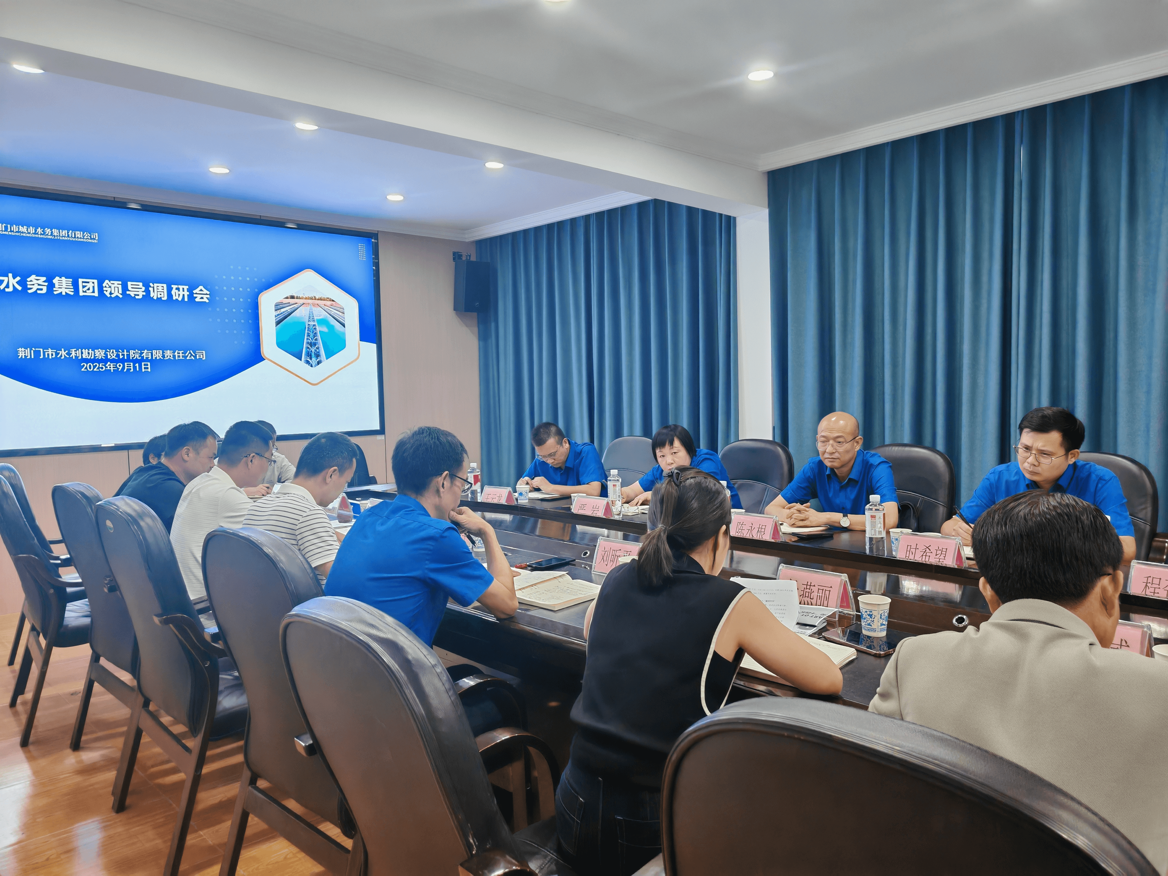 近日,市水務(wù)集團(tuán)黨委書(shū)記、董事長(zhǎng)陳永根率隊(duì)前往荊門(mén)市水利勘察設(shè)計(jì)院有限責(zé)任公司(以下簡(jiǎn)稱“水勘院”)開(kāi)展專題調(diào)研。