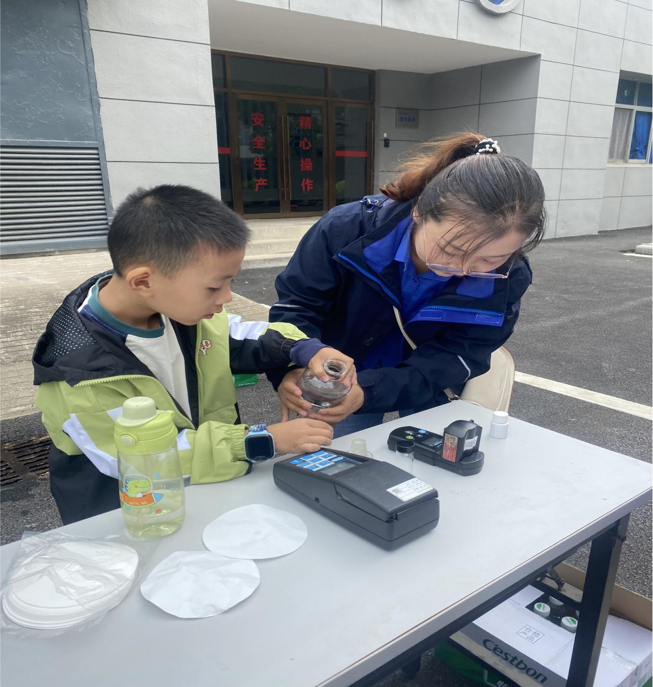 為讓水質(zhì)安全變得“可觸可感”,現(xiàn)場還設(shè)置了水質(zhì)檢測互動小課堂。集團專業(yè)化驗員先是生動演示余氯含量測定、濁度對比實驗,然后邀請小朋友們在家長陪同下親手操作檢測儀器。當看到自己檢測的數(shù)據(jù)與國家標準完全吻合時,孩子們高興地跳了起來。家長們紛紛點贊“這樣的實踐課比書本更生動,讓我們對日常用水更安心!”