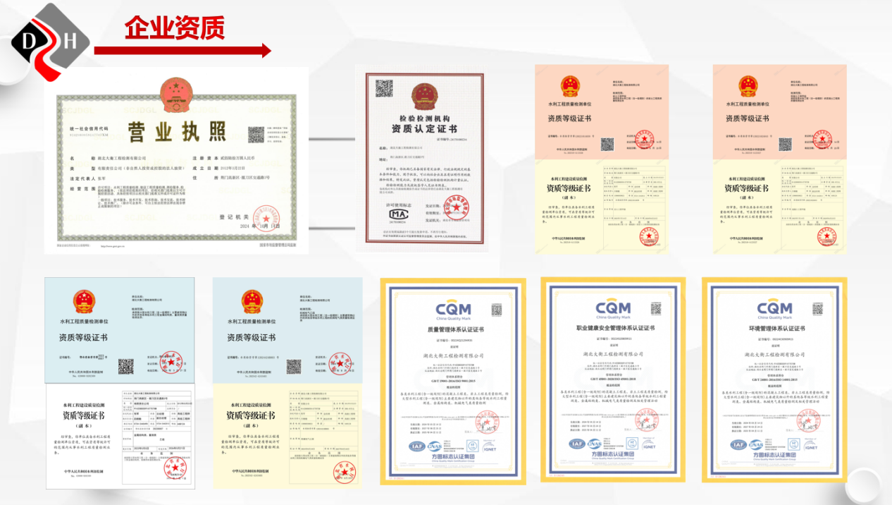 大衡公司持有湖北省市場監(jiān)督管理局評審中心頒發(fā)的CMA計量認證證書(共340項參數(shù)),具有水利工程檢測資質(zhì)巖土、混凝土甲級;量測、金屬結(jié)構(gòu)和機械電氣類乙級。業(yè)務(wù)范圍涵蓋水庫除險加固、灌區(qū)續(xù)建配套與節(jié)水改造、泵站更新改造、堤防工程、河道治理、農(nóng)村安全飲水、土地復(fù)核等多個領(lǐng)域,連續(xù)四年承擔(dān)湖北省水利廳水利工程飛檢任務(wù),以誠信經(jīng)營與專業(yè)服務(wù)樹立行業(yè)口碑。