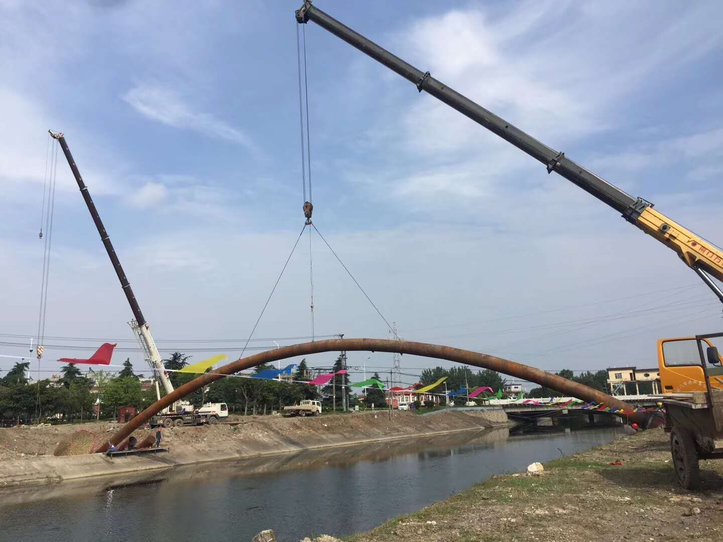 6月2日,跨總干渠DN800拱形鋼管吊裝合龍,標(biāo)志著荊門市供水總公司三水廠跨總干渠吊裝工程順利完成。至此,跨總干渠拱形鋼成為總干渠上又一道新的“彩虹橋”風(fēng)景。