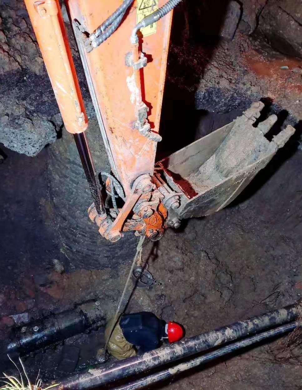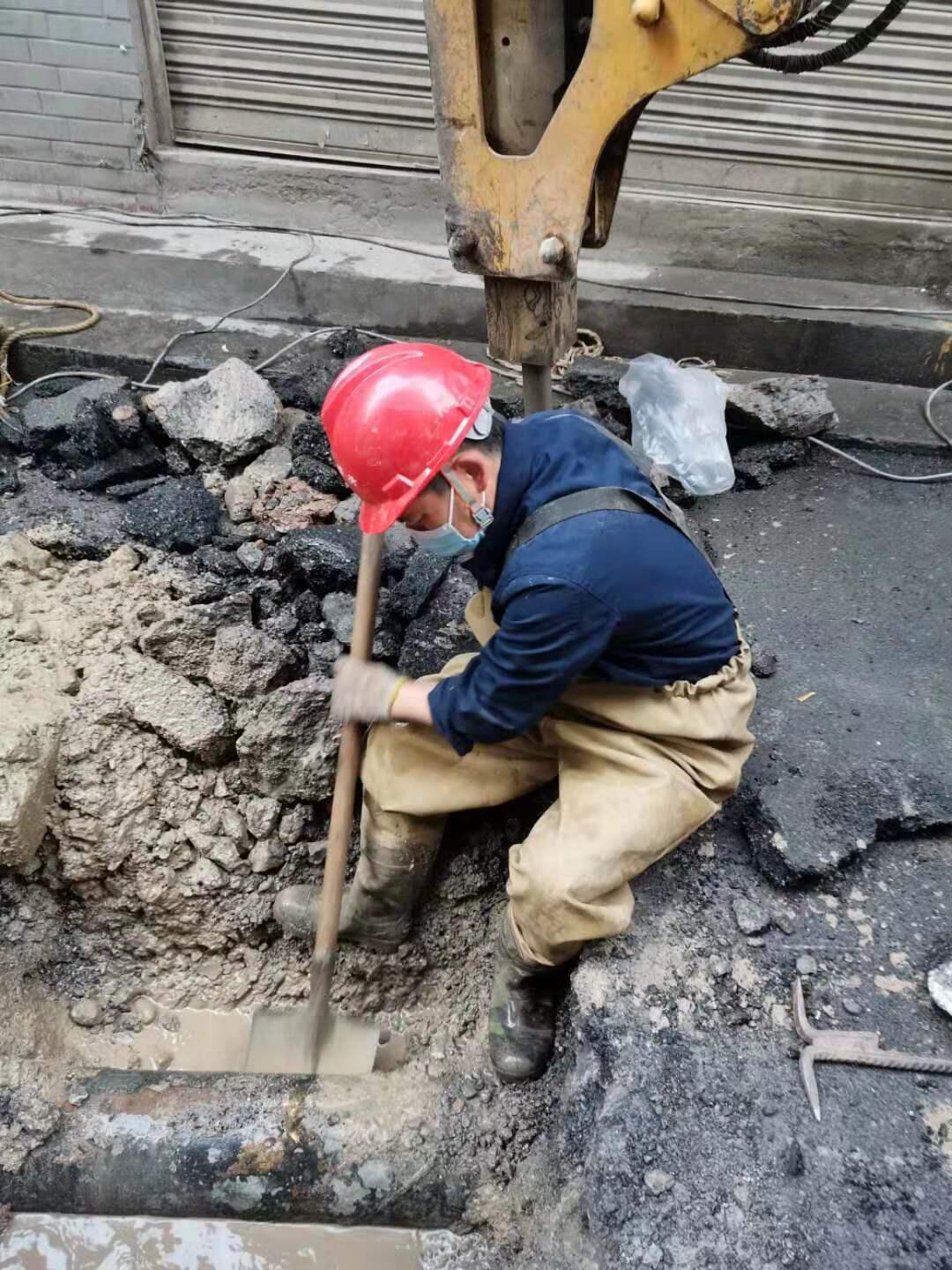 黃磊在建設街DN200管道搶修中開鑿出搶修坑