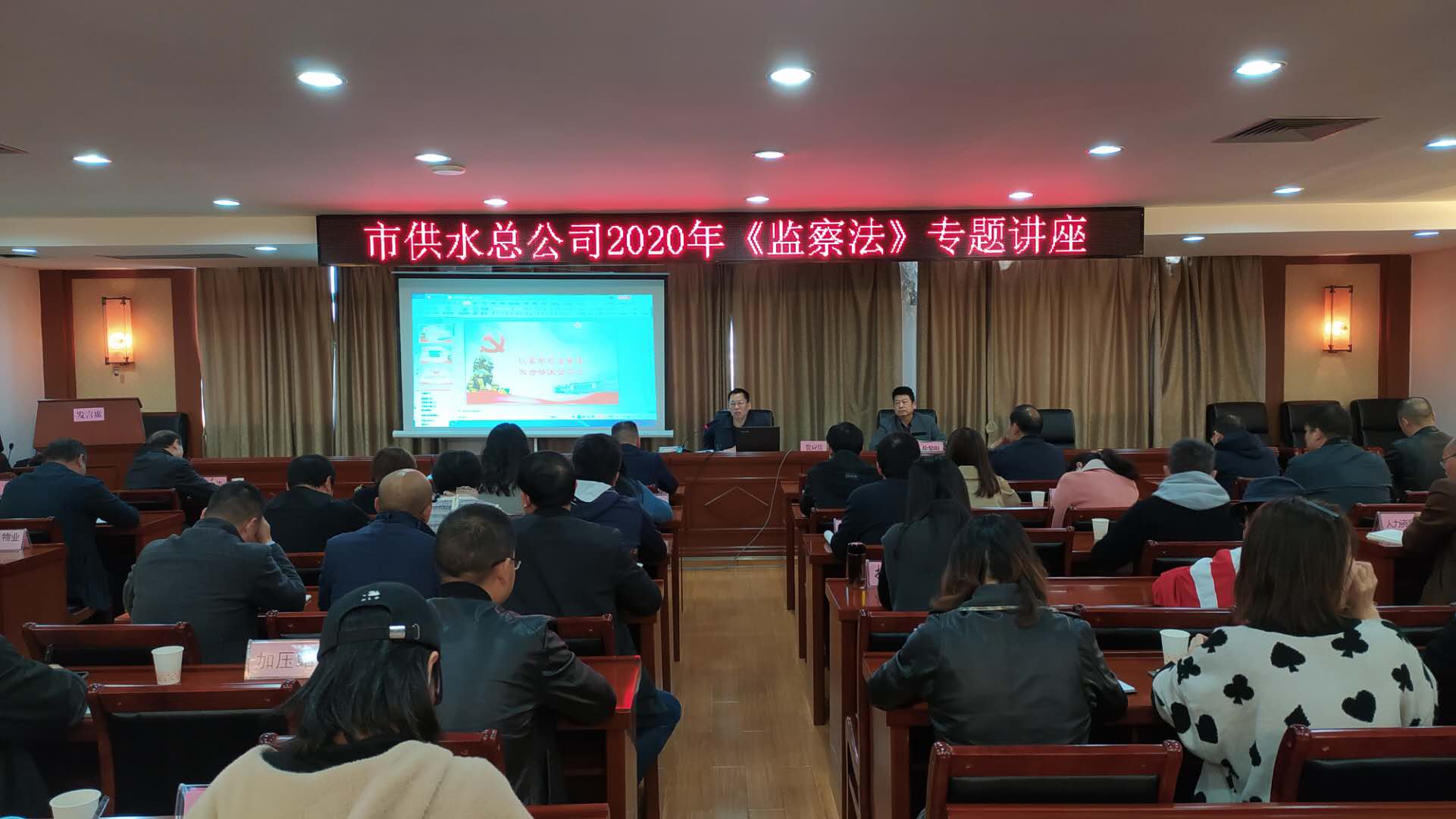 為推動(dòng)廣大黨員干部學(xué)習(xí)貫徹好《監(jiān)察法》,10月29日上午,市供水總公司舉辦《監(jiān)察法》專題講座。市紀(jì)委監(jiān)委駐市政府國(guó)資委紀(jì)檢組組長(zhǎng)賀應(yīng)佳應(yīng)邀授課。公司黨委副書(shū)記、紀(jì)委書(shū)記徐黎明主持講座,公司在家的黨委班子成員、中層干部、每支部2名黨員代表和機(jī)關(guān)全體工作人員參加專題學(xué)習(xí)。