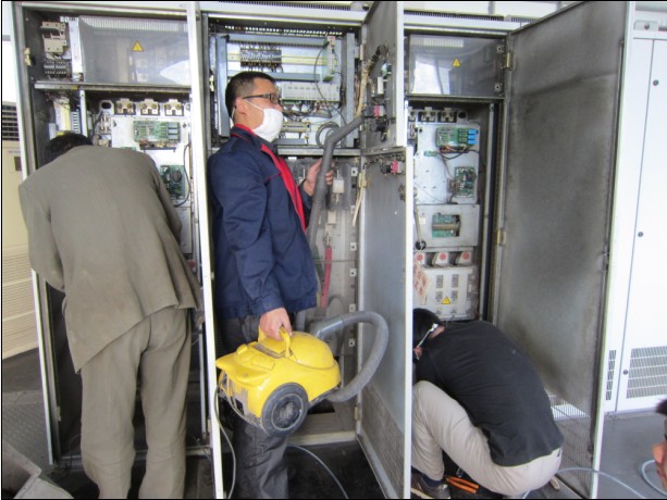 4月25日,夏季供水高峰季節(jié)即將到來,市供水公司三水廠組織維修人員對(duì)廠送水泵房1#500kw變頻機(jī)組進(jìn)行了整體檢修。圖為專業(yè)人員正在檢修變頻柜。