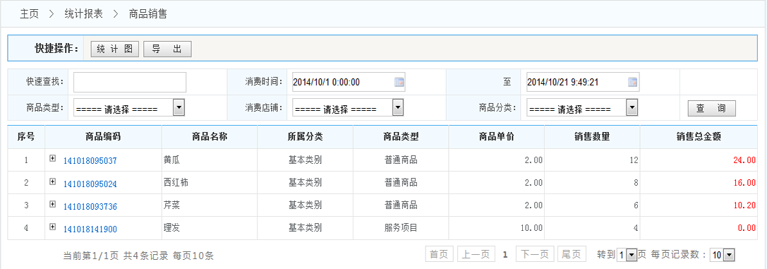 4.列表:雙擊商品編碼可以查詢(xún)商品消費(fèi)詳情